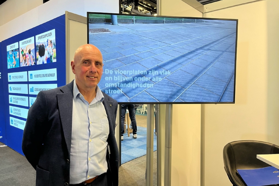 Olav Raijmakers van Gerflor introduceert sportcourtpowergame+ voor de buitensport en speelveldjes.