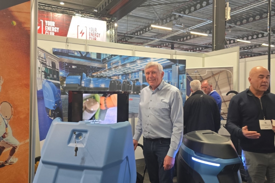 Arjan Boer van Armada Reinigingssysteem presenteert voor de twee keer de zelfontwikkelde padelbaanveger voor het reinigen en onderhoud van padelbanen. De machine is ook geschikt voor kunstgrasvelden!