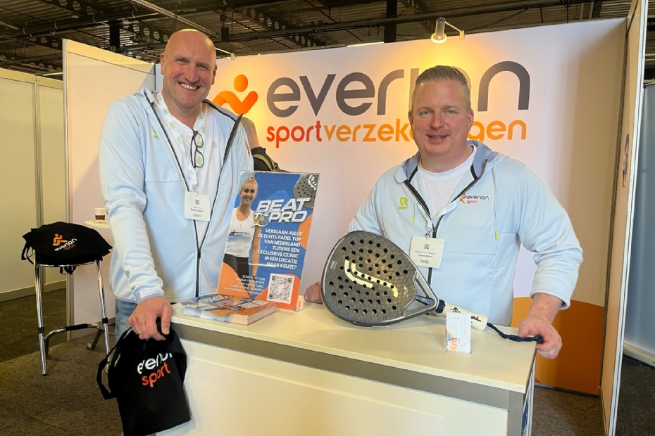 Bij Everion Sportverzekeringen staan Marcel van Rooijen en Joris Vos met een mooie winactie op de beurs. De hoofdprijs? Een padelclinic van NL pro Liza Groenveld. Everion levert collectieve verzekeringen met een uitgebreide dekking voor sporters, sportclubs en sportvrijwilligers.