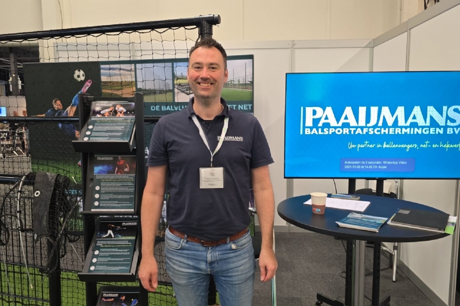 Robin Paaijmans van Ballenvangers.nl staat voor eerst op de beurs met zijn totaaloplossingen voor alle balsporten. Het bedrijf is gespecialiseerd in alle afwijkende netconstructies.