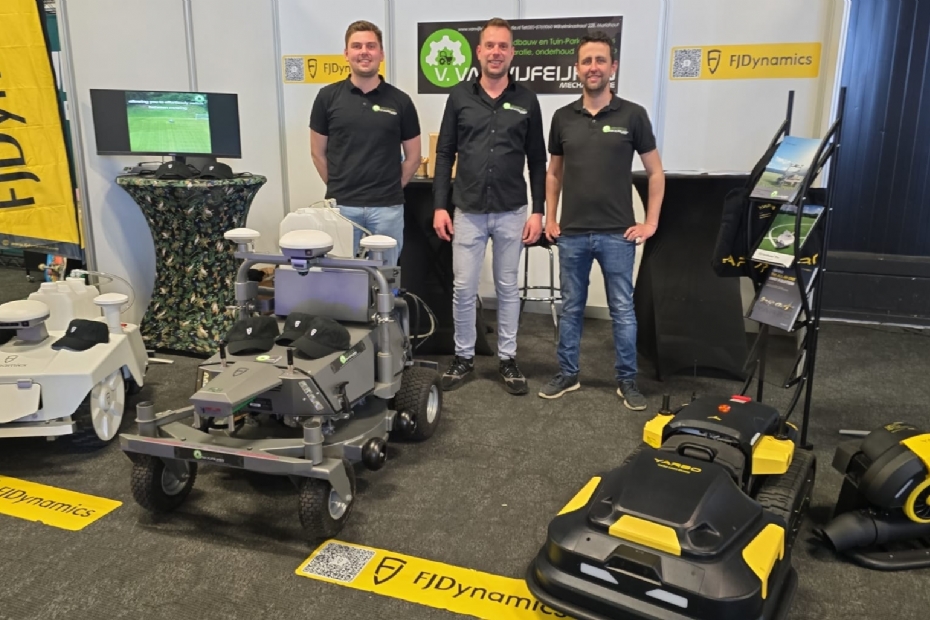Ton van Kessel, Vinnie Van Vijfeijken en Frans van der Wijst, van Van Vijfeijken Mechanisatie zijn voor de eerste keer op beurs. Het bedrijf heeft nu ook tuin- en parkmachines en specialiseert zich in robotmachines. Sinds dit jaar is het bedrijf importeur van Yarbo-machines.