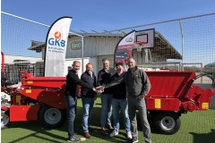 Vorige week op de Nationale Sportaccommodatie beurs lanceerde machinefabrikant GKB een nieuwe bladblazer. Het gaat om een grote blazer die met weinig vermogen achter een kleinere trekker groot vermogen kan leveren.
