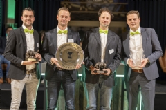De award-winnaars van 2024 Bas Franssen, Thijs Zandwijk, Raimond Sijmonsma en Gaëtan Lits, worden vergezeld door Monique van Slobbe en Ramon Timmermans van ICL en oud-Fieldmanager of the Year Peter van Mook van Vos Capelle. Op de hier afgebeelde foto staan ook nog twee medewerkers van de Engelse tak van ICL.