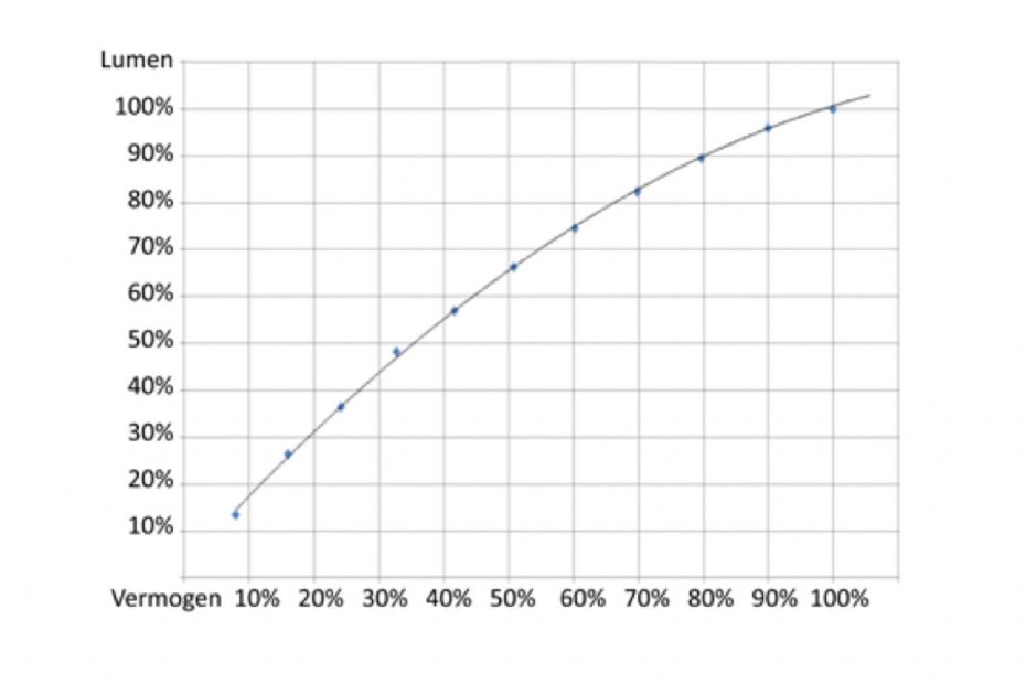 | | Voorbeeld van de verhouding tussen lumen en vermogen. Het rendement neemt toe naarmate er meer gedimd wordt. |