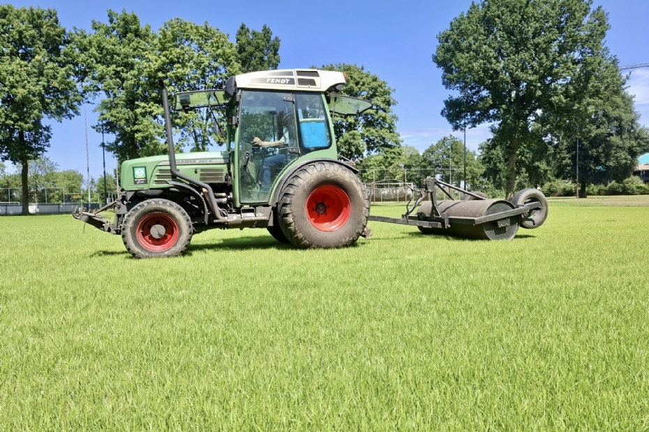 'Dit soort projecten laten mooi zien wat onze producten en expertise in het veld kunnen betekenen,' vindt Thijs Schoenmakers van DSV zaden. 'Vaak gaat de aandacht uit naar wedstrijdvelden, maar op een trainingsveld moet je het kunstje wel leren.' De renovatie begon met het verwijderen van de oude grasmat met een Fieldtopmaker, die vilt en overtollig organisch materiaal verwijdert. Daarna verkleinde een pulverfrees de achtergebleven wortels en volgde een egalisatieronde met de kilverbak.