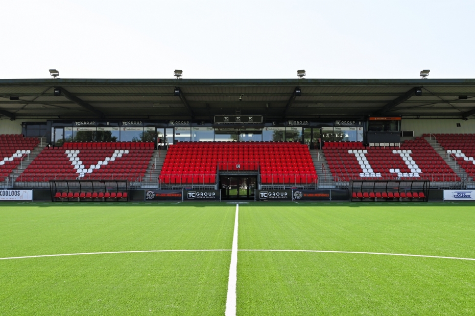 Opvallend detail van de nieuwe hoofdtribune: het clublogo prijkt trots op de rugleuningen van de stoelen, die door hun kleurstelling en indeling direct de identiteit van 'De Vogels' weerspiegelen. Daarmee is de tribune opnieuw hét visitekaartje van de tweededivisionist.