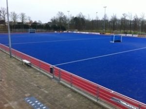 De club wilde betonnen slagplanken. Deze betonbanden zijn speciaal voor dit project gemaakt en geintegreerd in de lijn van het hekwerk. Deze uitvoeringswijze is goedgekeurd door de hockeybond.