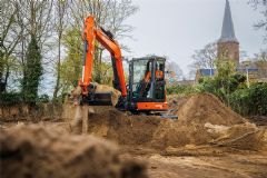 Finovi zet onder meer elektrische minigravers, een elektrische minishovel en elektrisch handgereedschap in. Groot elektrisch materieel, zoals rupskranen, wordt ingehuurd bij gespecialiseerde bedrijven. Dat vraagt om een andere manier van organiseren. 'Je bent beperkter in wat er beschikbaar is. Voor een dieselkraan bel je en die staat er. Bij elektrische machines moet je ruim van tevoren plannen', zegt Sanders. In de praktijk blijkt vooral de inzetduur van kleinere machines een uitdaging. 'Een elektrische minigraver draait geen volledige dag. Rond de middag is de accu vaak leeg. Dan moet je pauzes benutten om bij te laden.' Op sommige locaties, zoals bij FC Eindhoven, helpt een krachtstroomaansluiting. 'Daar kunnen we in de pauze even aan de kabel. Dan kan de kraan weer vooruit.' Voor het grote elektrische materieel werkt Finovi met wisselaccu's. 'Die worden buiten werktijd vervangen. Zo kunnen we een volle dag draaien zonder stilstand.' Toch blijft het werk anders dan met dieselmachines. 'De productie ligt soms iets lager. Niet alles kun je met dezelfde capaciteit uitvoeren.'