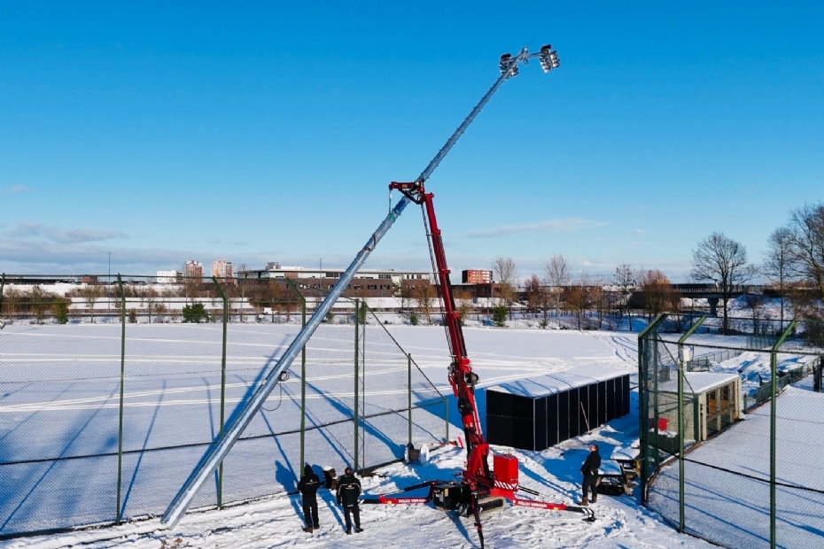Op het sportpark van honk- en softbalvereniging Grizzlies Zoetermeer heeft Sportverlichting onlangs een complete modernisering van de veldverlichting uitgevoerd. Ondanks de winterse omstandigheden — de monteurs werkten dagenlang in een dik pak sneeuw — verliep het project volledig volgens planning.