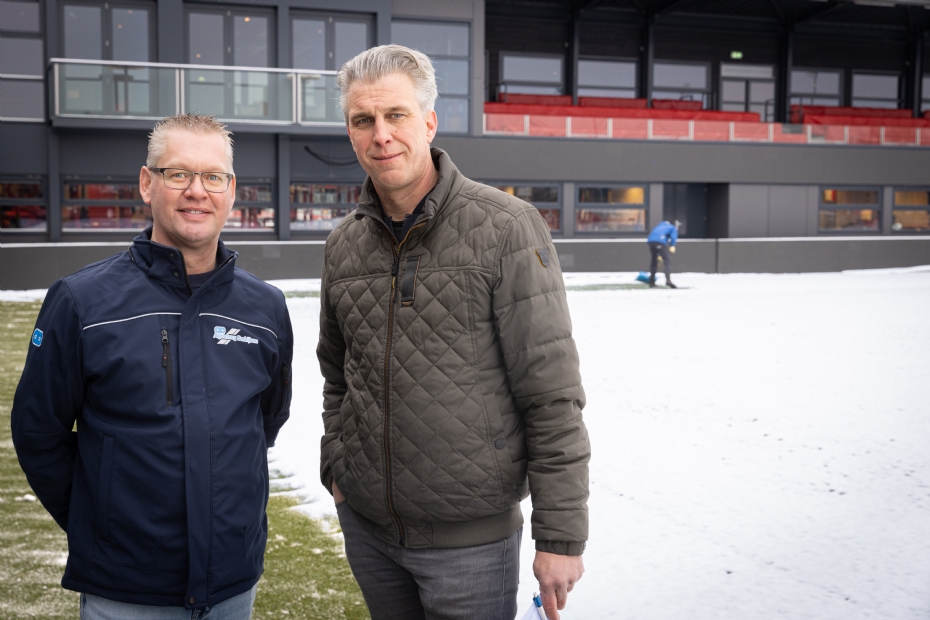 Een belangrijk hulpmiddel in de winter is veldverwarming. Tegelijkertijd is het onderwerp dat altijd discussie oproept, vooral als het gaat om kosten en duurzaamheid. Schelling benadrukt dat veldverwarming geen automatisme is en vaak budgetgestuurd. 'Het is altijd een afweging tussen kosten, belasting van het gras en het wedstrijdprogramma.' In de Eredivisie speelt zekerheid een grote rol. 'Je hebt te maken met strakke speelschema's, tv-verplichtingen en hoge sportieve druk. Afgelasten is bijna geen optie. Dan wordt veldverwarming ingezet om zekerheid te creëren, ook als dat extra kosten met zich meebrengt.' In de KKD ligt die afweging anders. 'Kosten wegen zwaarder en de druk is iets lager, maar veldverwarming verkleint nog steeds het risico op afgelastingen. Het is geen zwart-witkeuze. De club bepaalt het budget en de inzet, wij adviseren op basis van grasgezondheid en risico's.'