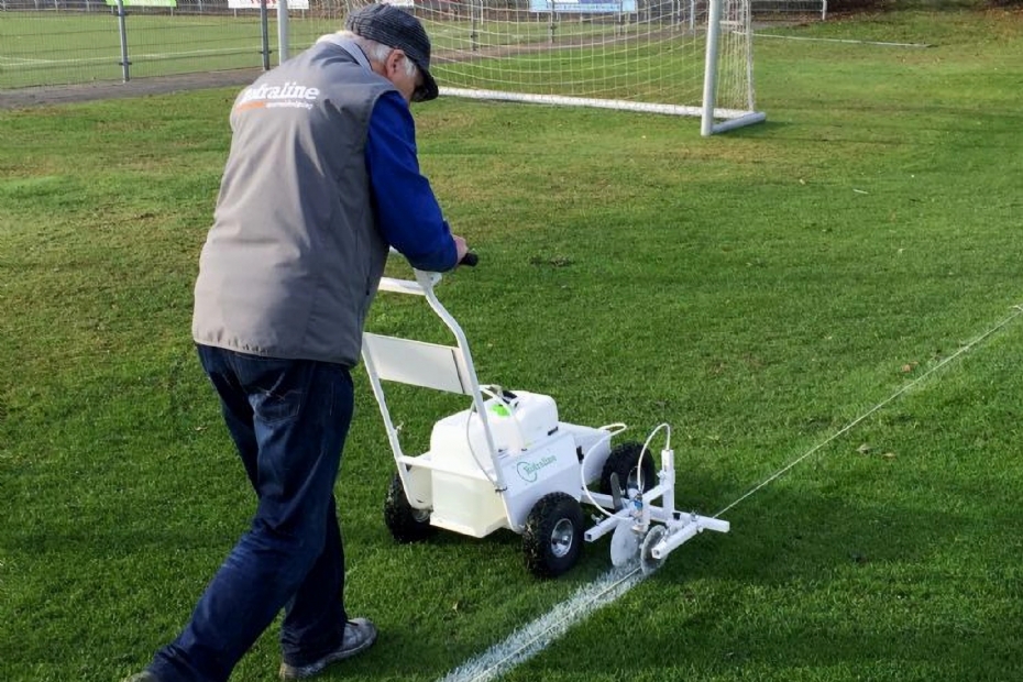 Het groeiende tekort aan vrijwilligers bij amateurclubs vormde de aanleiding voor Grotenbreg en Kuster om zich in robotbelijning te gaan verdiepen. Dit leidde tot een samenwerking met fabrikant TinyMobileRobots. Deze Deense producent maakt robotbelijners die op basis van nauwkeurige GPS-technologie na één inmeting zelfstandig lijnen kunnen trekken. Helemaal autonoom zijn ze echter nog niet. 'Je moet hem wel met een tablet activeren, en je moet wel in de buurt blijven. Op afstand kan het (nog) niet', legt Grotenbreg uit.
