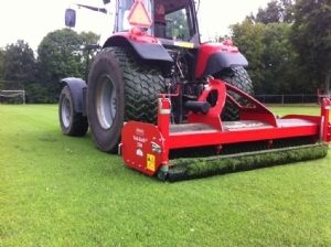 Deze 2,5 meter brede Vertiknife, is een snelle lineaire beluchter die sleufjes in de grond maakt zodat lucht, water en voedingsstoffen gemakkelijker bij de wortels kunnen komen, hetgeen de groei van de grasplant bevorderd.