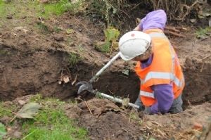 Op de oorspronkelijke locatie lag onder de kluit een waterleding. Deze moest afgesloten worden.