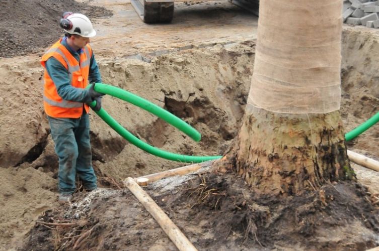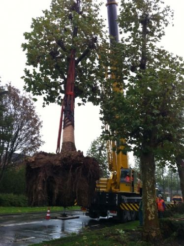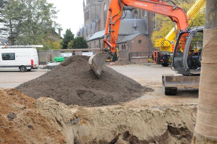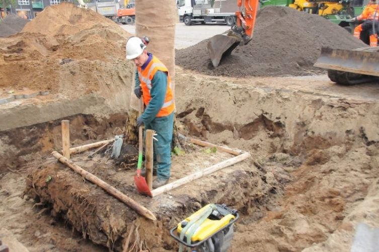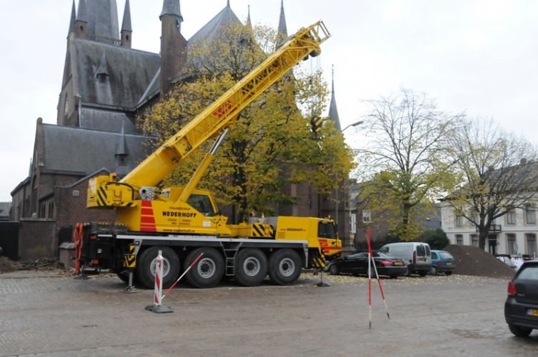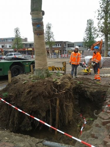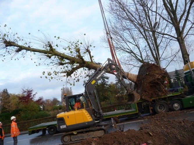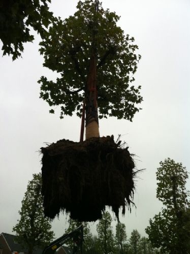 De rondgestoken kluit werd met een kraan opgetild. Sommige kluiten waren circa 3 x 3 x 3 meter groot. Een totaalgewicht van circa 20 ton.