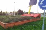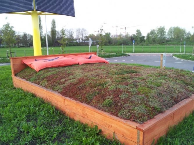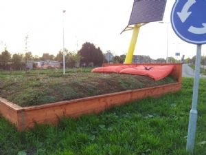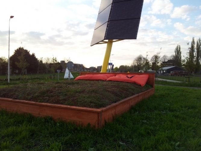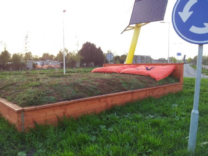 De Boxspring Specialist, een lokale ondernemer uit Waddinxveen, was op zoek naar nieuwe ideeën om zichzelf te profileren. Door middel van een samenwerking met de Stichting Rotondes Waddinxveen kwamen ze op het idee om een reuze bed op een rotonde plaatsen. Het werd een reuze bed met een dekbed van wilde bloemen en groen er om heen. Een paar weken geleden werd het kunstwerk al geplaatst, alles werd ingezaaid en de reuze kussens werden geplaatst. De sedum matten zijn geleverd door Zinco. Het project is een samenwerking tussen gemeente Waddinxveen, Stichting Rotondes Waddinxveen en een lokale ondernemer.