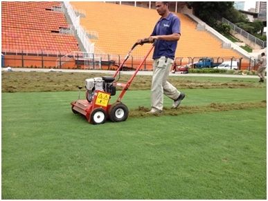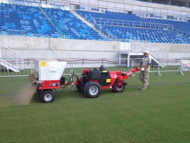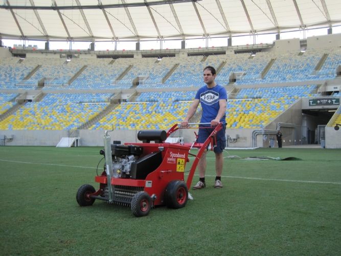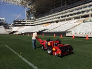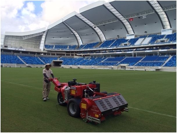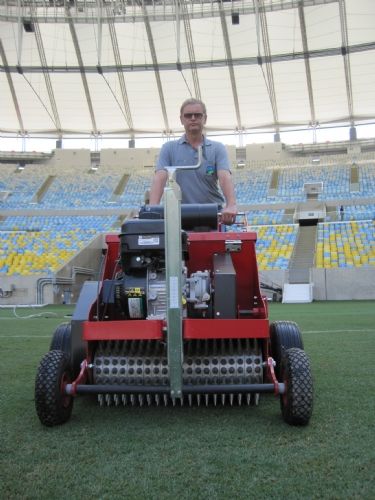 Nu het WK van start is gegaan, is het zaak om na de wedstrijden de velden weer snel in conditie te krijgen voor de volgende wedstrijd. Op het WK in Brazilië worden zelfrijdende onderhoudsmachines gebruikt, zodat de bodemdruk beperkt blijft. In de 12 stadions zijn op de velden tijdens het toernooi, tractoren zijn namelijk niet toegestaan, teneinde het risico van afdrukken in de grasmat te voorkomen.