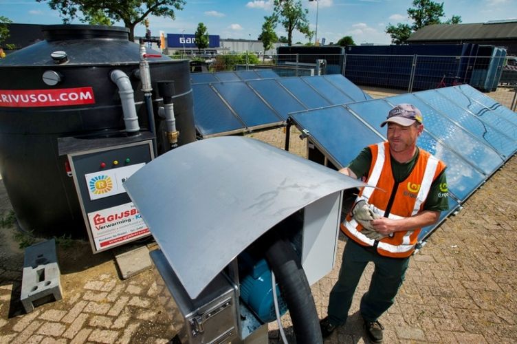 Door de inzet van zonneboilers probeert Wave Weed Controlin Eindhoven de benodigde energie en daarmee de kosten te verlagen. Dit systeem wordt nu voor het eerst toegepast in Eindhoven in opdracht van het SW-bedrijf Ergon en is ontwikkeld door Wave Weed Control in samenwerking met Rivusol uit Eindhoven. De zonnecollectoren hebben een totaal oppervlak van 40 vierkante meter. Deze zijn aangesloten op een gesloten buizenstelsel gevuld met water. Via een warmtewisselaar wordt de zonnewarmte overdragen aan water in het 5000 liter grote boilervat. Dankzij de opwarming tot circa 60 graden Celsius kan Wave een enorme besparing op het gebruik van fossiele brandstoffen realiseren. Commercieel directeur Hiddema spreekt over ongeveer 40 tot 60 procent; de CO2-uitstoot vermindert en de gebruiksprijs wordt lager. Volgens Hiddema zou de benodigde investering in drie tot vier jaar zijn terug te verdienen. Het opgewarmde water uit de boiler wordt door een slang in enkele minuten overgepompt in normale Wave High Series 75/30. Dit is een zelfrijdende machine, die warm water kan inslaan en reeds een aantal maanden op de markt is. Met de Wave High Series kunnen maximaal twee man met behulp van heetwater-schoffels de onkruidbestrijding op verhardingen uitvoeren.