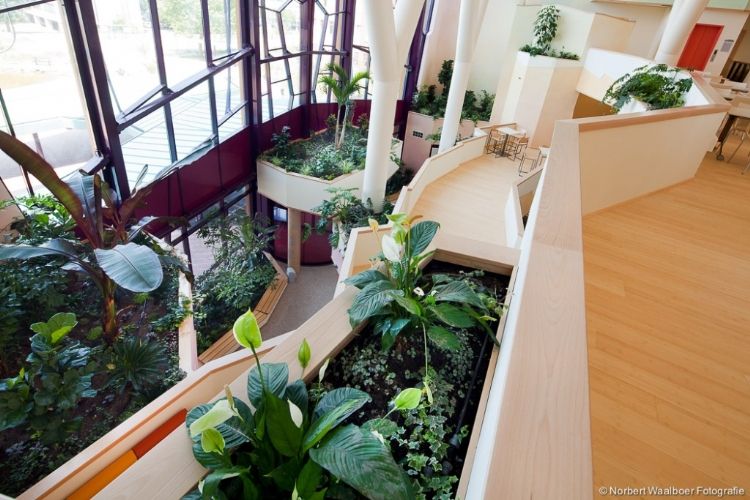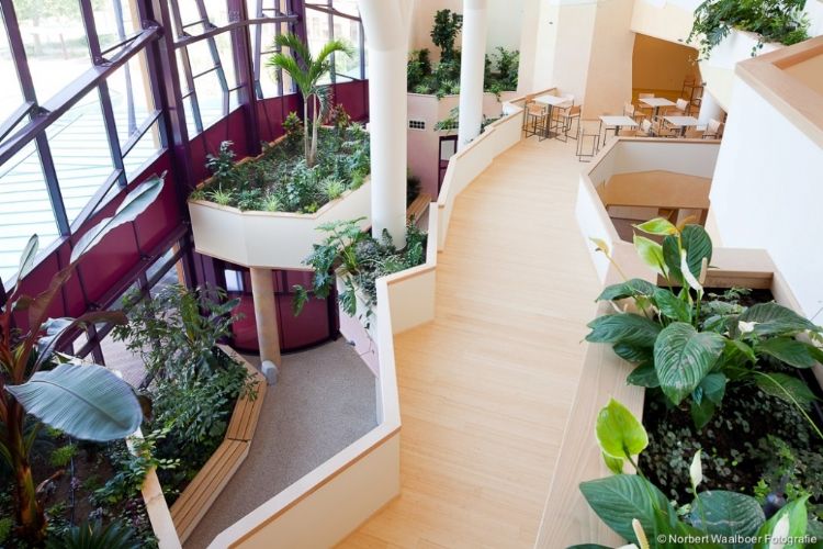 Het nieuwe Isala-ziekenhuis in Zwolle is ontworpen als een beterhuis. Diverse binnentuinen in het ziekenhuis, zogenoemde atria, vormen de overgang tussen de groene weelderige natuur rondom het gebouw en de organische omgeving binnen.