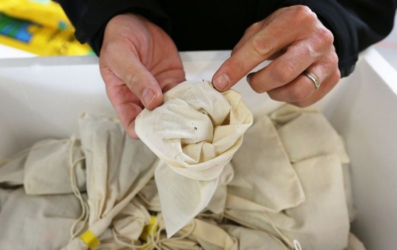 De ongebleekte linnen zakjes kunnen na het openen eenvoudig, zonder extra handelingen in de boom worden gehangen door middel van een nietje, spijker of punaise. Hoe eenvoudiger het is om de larven in de boom te krijgen hoe sneller de klus wordt geklaard, dus hoe goedkoper… Ook de overlast voor omwonenden tijdens het inzetten van de zakjes wordt zo tot een minimum beperkt.