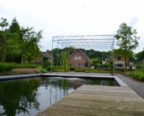 Complete buitenterrein inrichting van VMBO en MBO college AOC te Twello. Assortimentstuin, Uniek Gebouw, Leerlingen betrokken bij project, beeldbepalend in omgeving.
