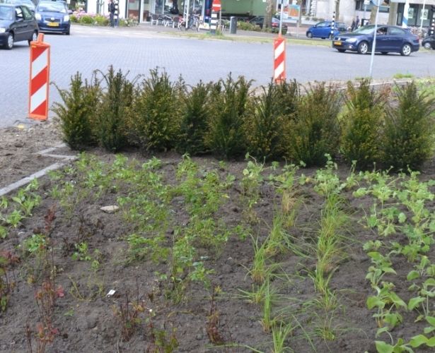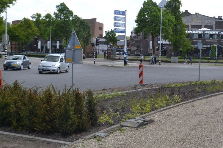De werkzaamheden lopen inmiddels bijna ten einde. De meeste jonge planten staan in de grond, het is wachten op de laatste paar plantjes die nog geleverd worden. Met het egaal maken van de aarde is het geheel klaar. Tijdens de Nijmeegse Vierdaagse zal iedereen al volop van het nieuwe groen kunnen genieten. Wel even letten met oversteken, want die dagen zijn het niet de auto's, maar de fanatieke wandelaars die de straten rondom de rotonde bevolken.