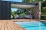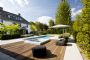 Daktuin tussen molen en kerk, met aluminium designwanden van Adezz
